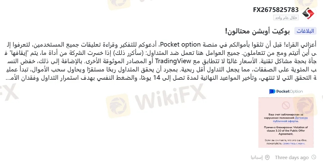 - تشير عدة تقارير إلى تورط Pocket Option في ممارسات مشبوهة، منها: