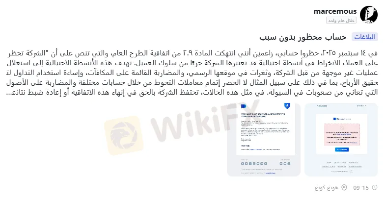 - لقد تلقّت WikiFX ما مجموعه 24 شكوى من المستخدمين ضد هذا الوسيط، لذا يُرجى الانتباه إلى المخاطر وعدم الوقوع في الاحتيال!
