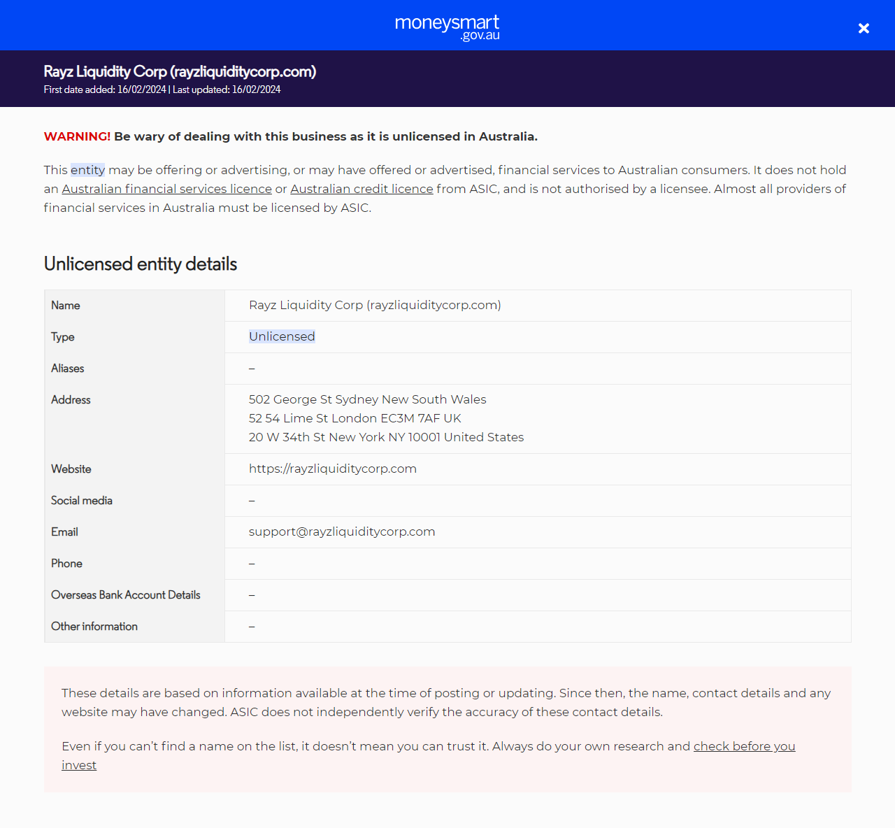 قائمة تنبيهات المستثمرينRayz Liquidity Corp (rayzliquiditycorp.com).
