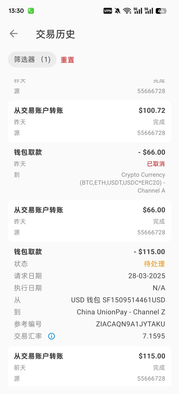 2025年3月28号的出金,到现在没处理,连续三天没给出金了,同时现在100多美刀的出金,也没批准。