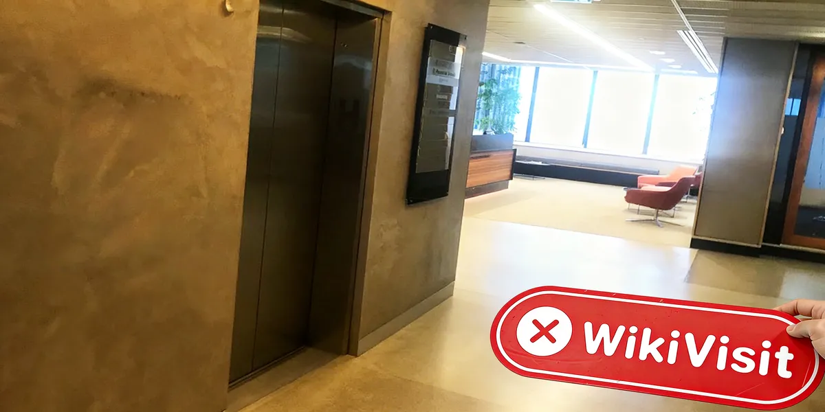 Das Inspektionsteam betrat das Bürogebäude und fand einen Wegweiser, nach dem sich das Büro-Sharing-Unternehmen REGUS im 23. Stock befindet. Das Team fuhr mit dem Aufzug in den 23. Stock und fand mehrere Kapital Mitarbeiter mit Abzeichen. Leider konnte das Team keine weiteren Fotos machen.