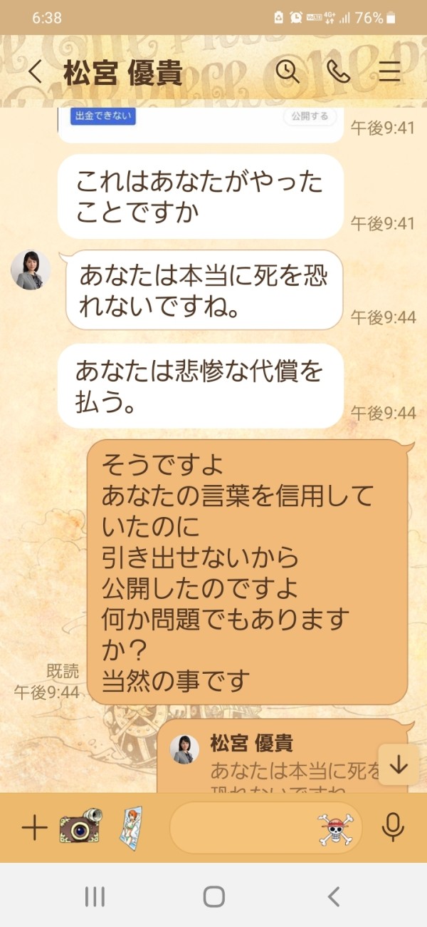 出金に関してここで話をしたことについて8月22日にマネージャーから連絡があり私は脅されました
