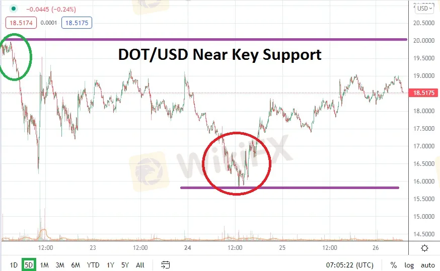 DOT/USD has been able to create a slight reversal higher the last day of trading, but it remains within sight of important support levels which may fuel nervous sentiment.