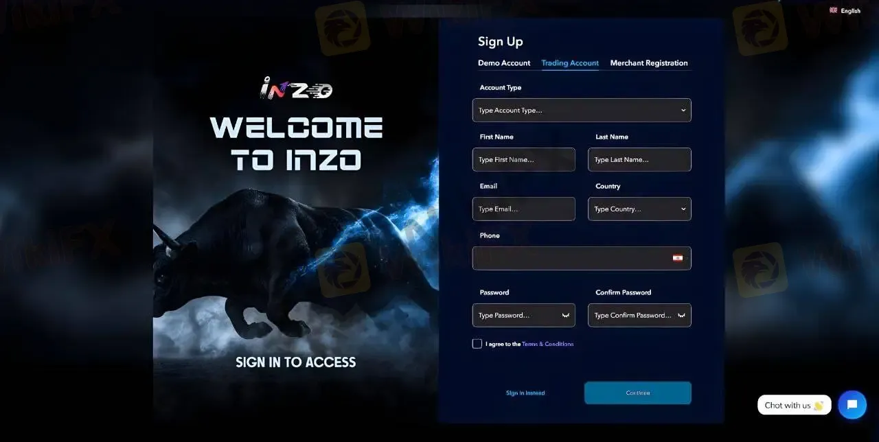 Open a trading account with INZO
