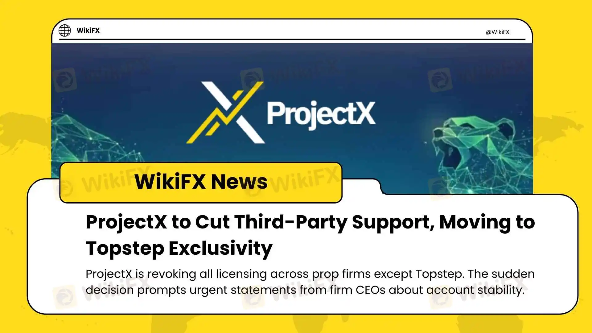 The news broke widely across social media and industry channels, highlighting that ProjectX is revoking licensing for its platforms across the board, with the sole exception of Topstep.