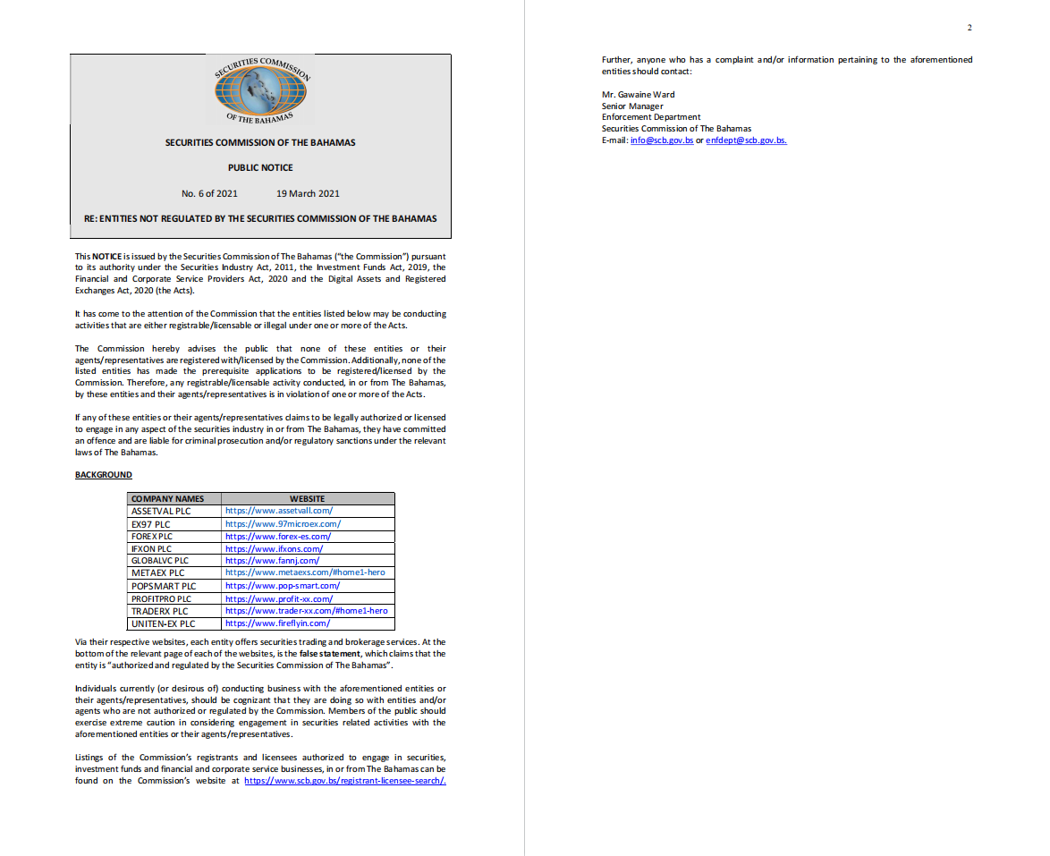 This NOTICE is issued by the Securities Commission of The Bahamas (“the Commission”) pursuant