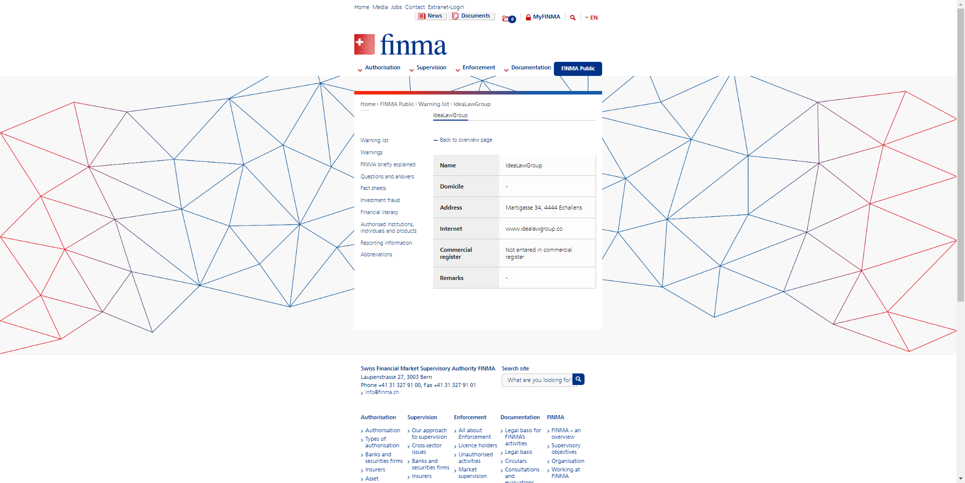 Warning list of unauthorised companies and individuals Warning List - IdeaLawGroup
