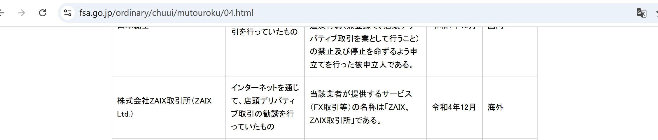 Entity conducting financial instruments business without registration - ZAIX Exchange Co., Ltd. (ZAIX Ltd.)