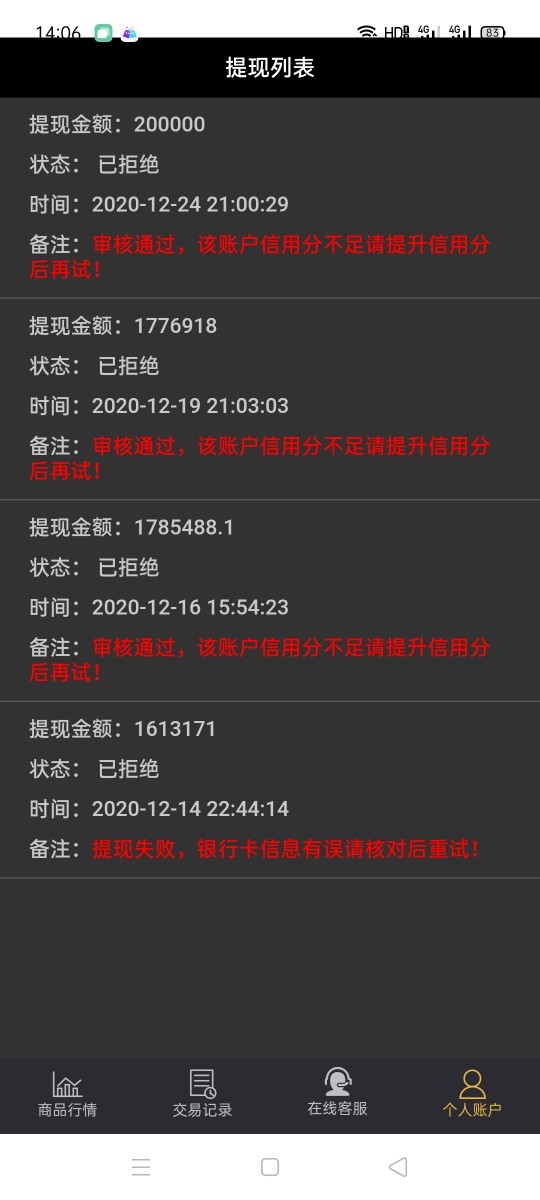 骗子不让提现,银行卡输错让交保证金,又说信用分不够。骗子诈骗犯