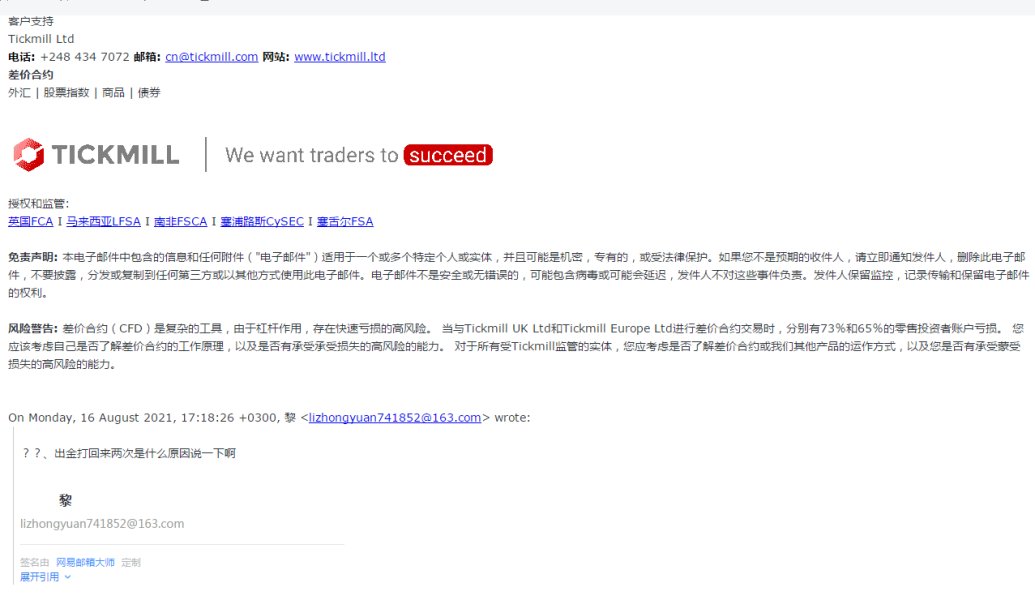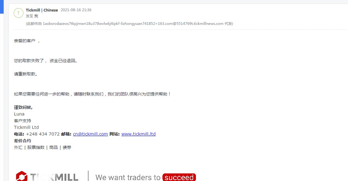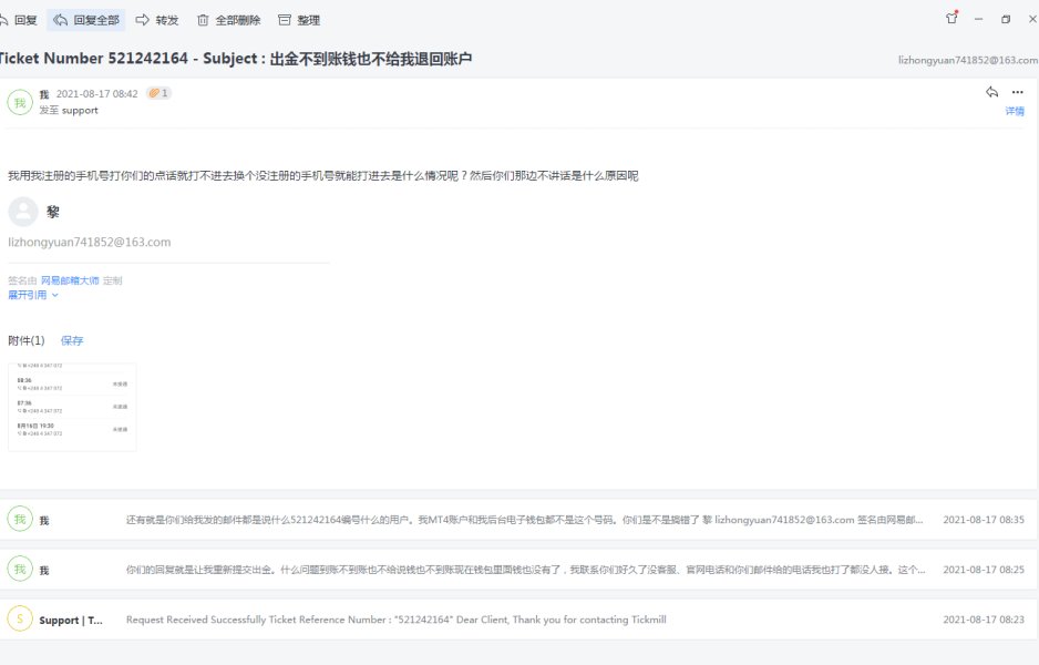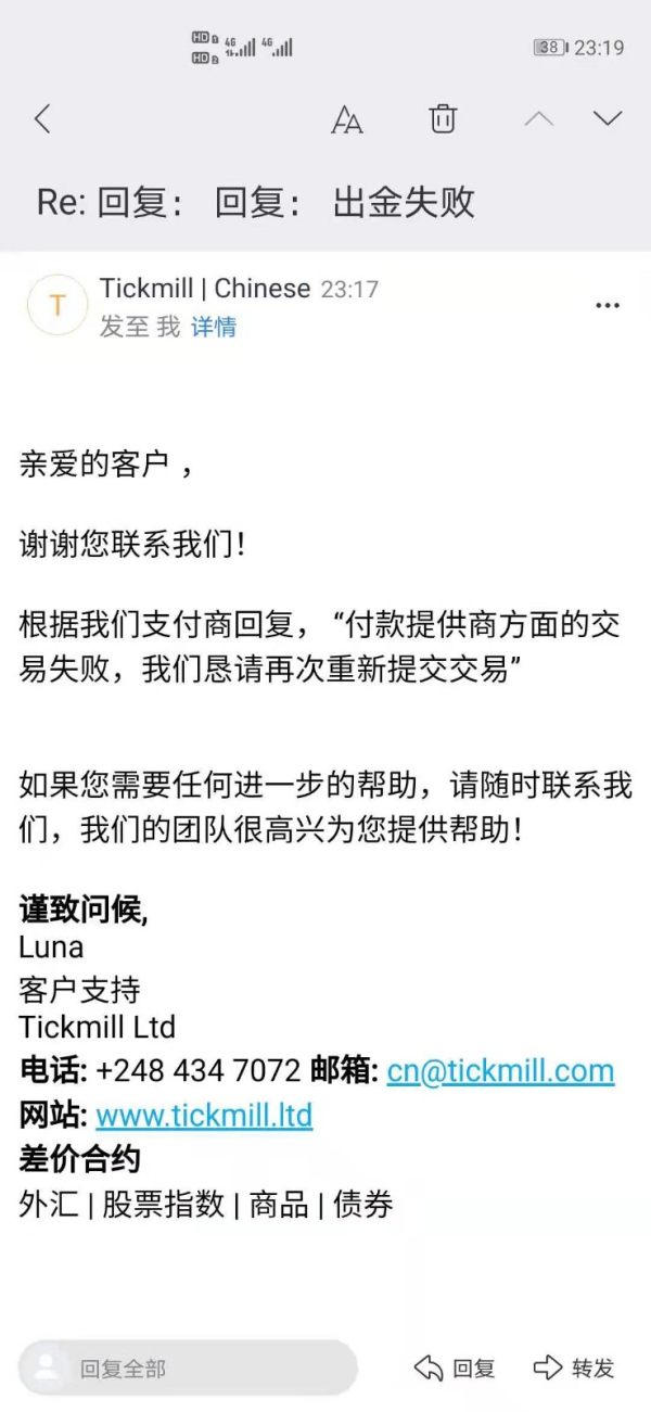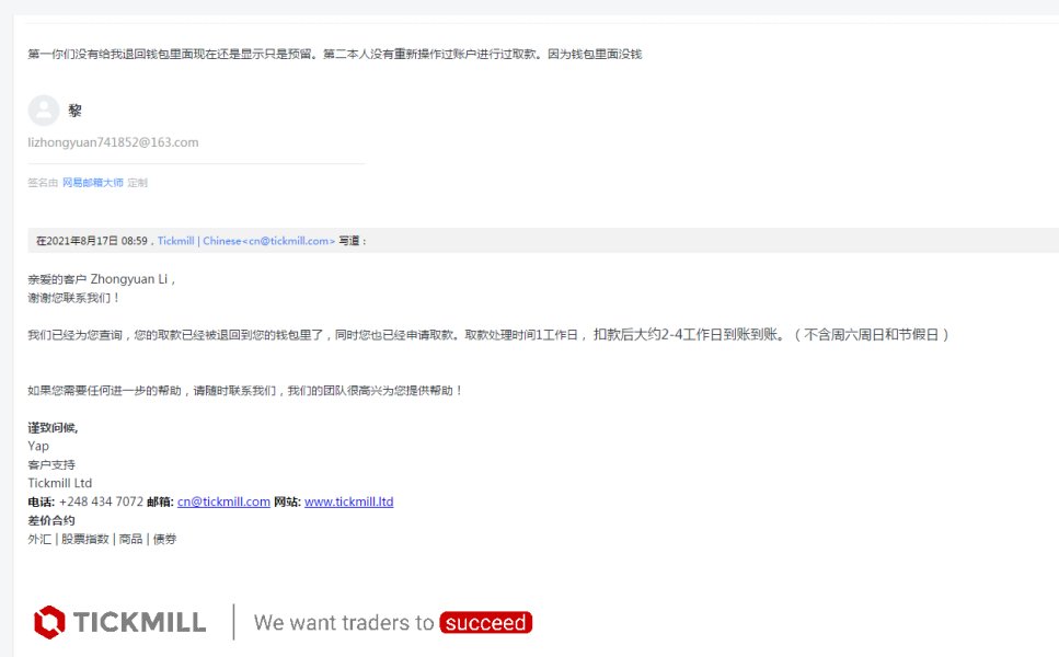 TICK出金一直不到账提交出金就给驳回且不告知任何理由,而且之前驳回都是把钱退回钱包还可以重新提交现在驳回是直接钱包里面钱不见了不能提交出金也不到账