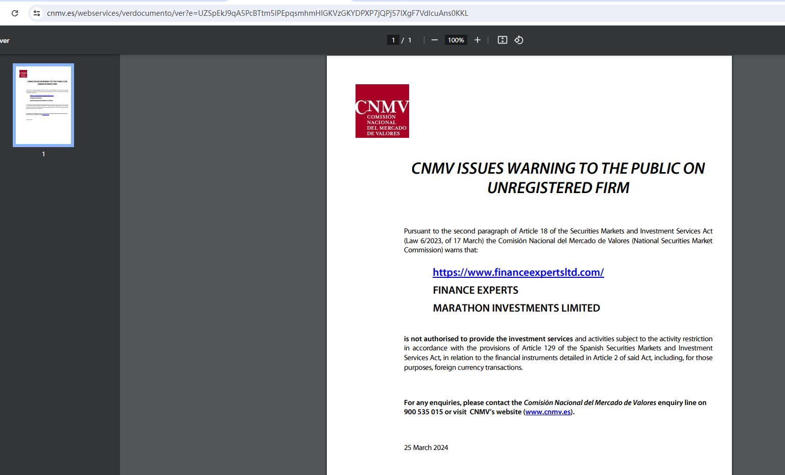 - Dahilan ng parusahttps://www.financeexpertsltd.com/ Finance Experts Ang marathon investments limited ay hindi awtorisado na magbigay ng mga serbisyo sa pamumuhunan at mga aktibidad na napapailalim sa paghihigpit sa aktibidad alinsunod sa mga probisyon ng artikulo 129 ng spanish securities markets at investment services act.