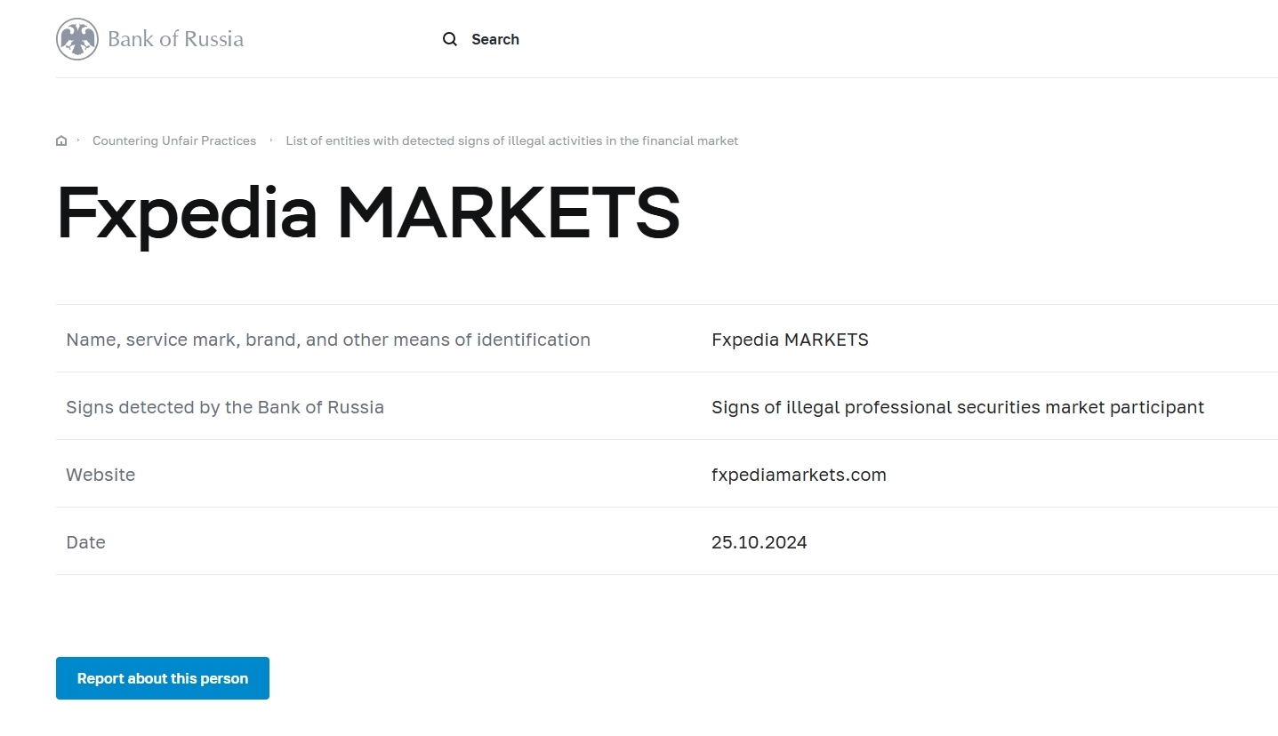 Listahan ng mga entidad na may natukoy na palatandaan ng ilegal na gawain sa pamilihang pinansyal Fxpedia MARKETS.