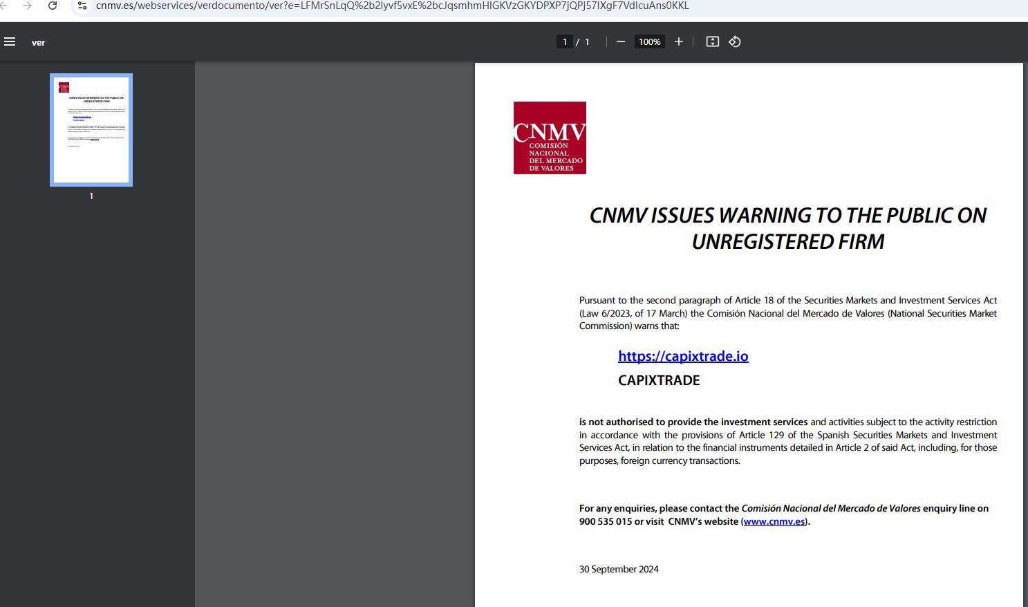 - Dahilan ng parusahttps:// Capixtrade .io Capixtrade ay hindi awtorisadong magbigay ng mga serbisyo sa pamumuhunan at mga aktibidad na napapailalim sa paghihigpit sa aktibidad alinsunod sa mga probisyon ng artikulo 129 ng spanish securities markets at investment services act