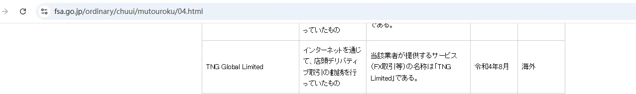 Isang indibidwal o entidad na nagsasagawa ng negosyo sa pagpapalitan ng mga instrumentong pampinansyal nang walang rehistrasyon - TNG Global Limited