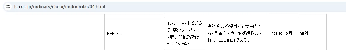 Ang indibidwal o entidad na nagsasagawa ng negosyo sa pagpapalitan ng mga produktong pinansyal nang walang rehistro - EBE Inc.