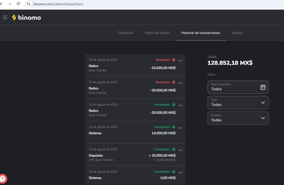 Después de un tiempo de hacerle muchos depósitos, validaciones de cuenta, empezaron a denegarme los retiros. La ventana aparecía con la leyenda "retiros suspendidos", contacté a soporte y éste solo daba respuestas automáticas. A los días me bloquearon permanentemente la cuenta, solo explicaron que fue por "acciones sospechosas y fraude" y dejaron de contestar, se quedaron con mi dinero invertido y mis ganancias. Perdí cerca de 15 mil dólares en ese broker, quedé en banca rota. No se dejen engañar, ese broker dejó de ser confiable. No pierdan su patrimonio, su tiempo ni su dinero EN BINOMO. No les va a respetar ni su dinero ni su cuenta.