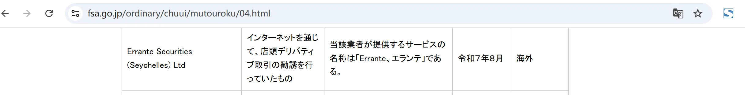 La Financial Services Agency (FSA) supervise tous les fournisseurs de services financiers, y compris les courtiers Forex, au Japon. L'objectif ultime de la FSA Japon est de maintenir le système financier du pays et d'assurer sa stabilité. Elle est aussi responsable de protéger les investisseurs en bourse, les preneurs d'assurances et les déposants. Elle atteint ses objectifs en plusieurs manières différentes dont la planification et l'élaboration des politiques, la surveillance des fournisseurs de services financiers, la supervision des transactions boursières et l'inspection des établissements financiers dans le secteur privé. Quand la FSA avait été créée premièrement, elle était simplement un corps administratif. Cependant, ses responsabilités ont été élargies en 2001 quand elle devennait le représentant externe du Bureau du Conseil du Japon. Elle a pris en charge les responsabilités du Comité de Reconstruction Financière, et aussi pris en charge pour les établissements financiers en faillite. Aujoud'hui, la FSA Japon est tenu responsable de la Ministère de la Finance au Japon et assume un large éventail de responsabilités.