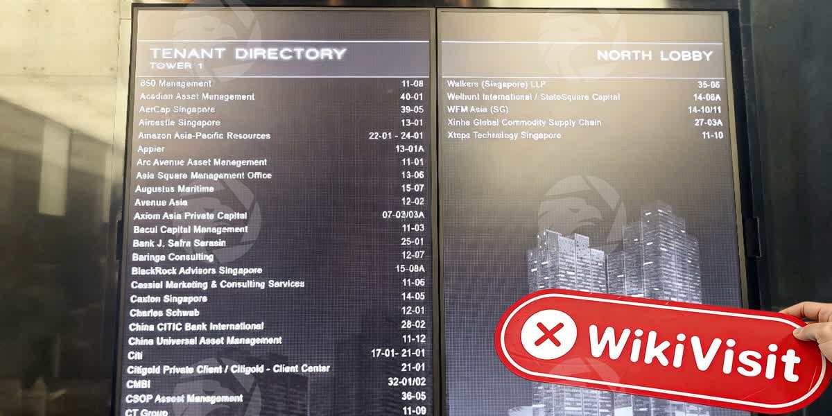 L'enquêteur sur le terrain est arrivé avec succès à Asia Square Tower 1, située dans un quartier animé de Singapour avec un environnement propre et une forte atmosphère commerciale. Ce bâtiment est l'une des tours de bureaux les plus luxueuses de Singapour. L'enquêteur a pris des photos du panneau d'affichage du bâtiment mais n'a trouvé aucune enseigne ou information relative à Seventy Brokers sur l'extérieur du bâtiment.
