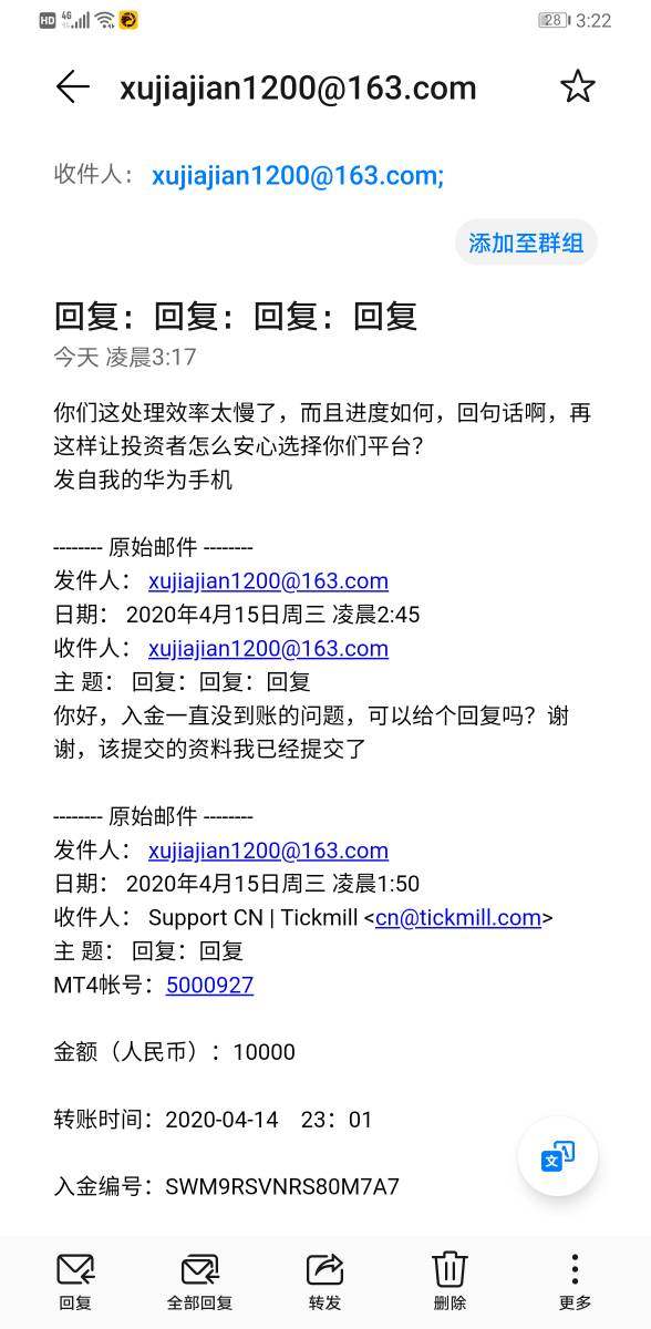 联系邮箱回复什么都没有,就刚开始一句。后来怎么咨询都只是回复,但没有内容,客服不知道怎么想的,而且联系渠道太单一了,只有邮箱,想回复就回复,入金几个小时不到账,导致保证金不够爆仓。