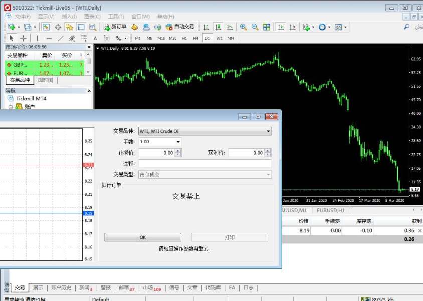 Tickmill 后台操控原油价格和走势图,违背市场走势,随后禁止原油交易