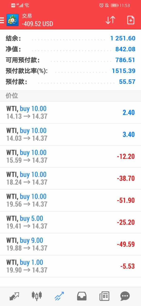 国际油价已经 回到37美金附近位置了,但是这个平台的油价才14美金左右,导致本仓位目前浮亏,继续每天缴纳库存费,本该早就盈利平仓了的。