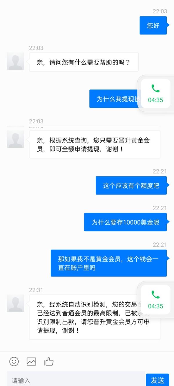 2021年1月15日,我听一个网友的指使转入8000美元,即56000元人民币到Orbex欧贝斯交易平台,在他的指导下买了美元/日元的涨跌,挣了不少,买完后账户总资产17600美元,当我提现的时候被拒绝了,问客服说必须再存入10000美元晋升为黄金会员才能提现,立马意识到自己被骗了。平台是黑品台无疑,网友可能是平台雇佣的骗子,一直让我借钱存进去,办法很低劣,能想到的办法都能给你想到,让你用自己的信用去各大APP去借。