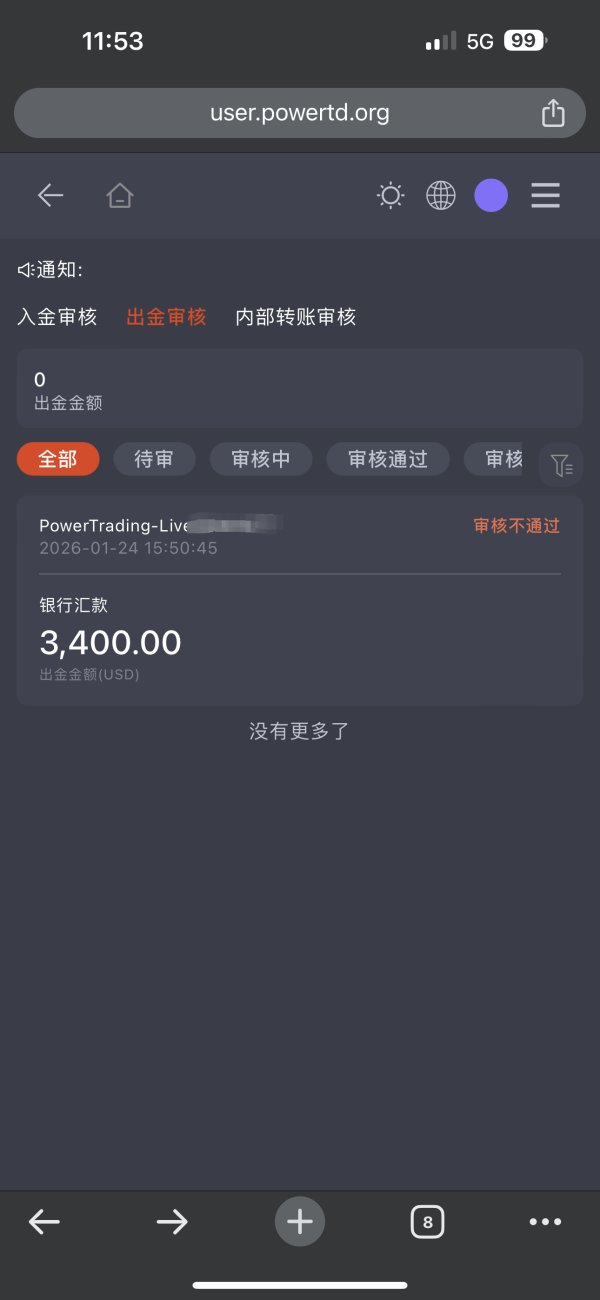 पावरट्रेडिंग निकासी की अनुमति नहीं देता है
