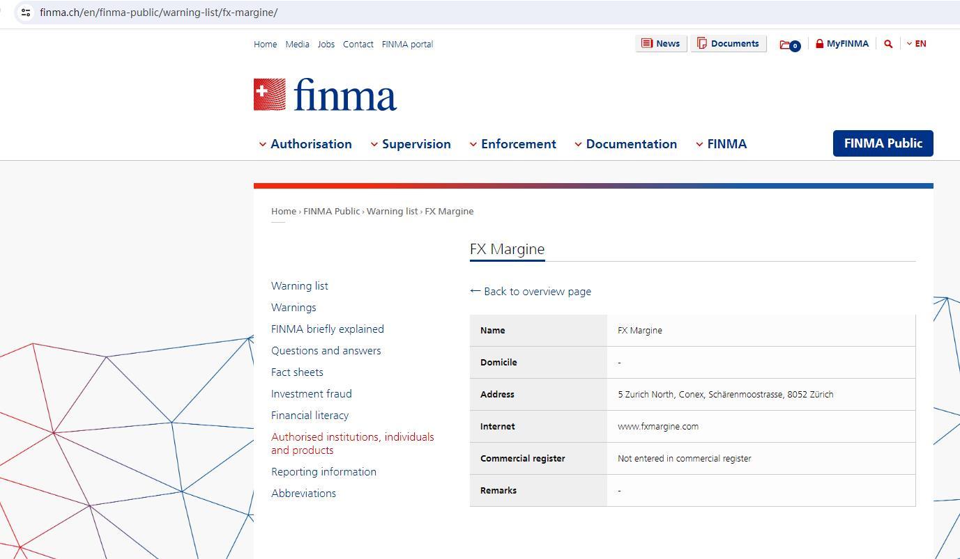 अनधिकृत कंपनियों और व्यक्तियों की चेतावनी सूची चेतावनी सूची -www.fxmargine.com.