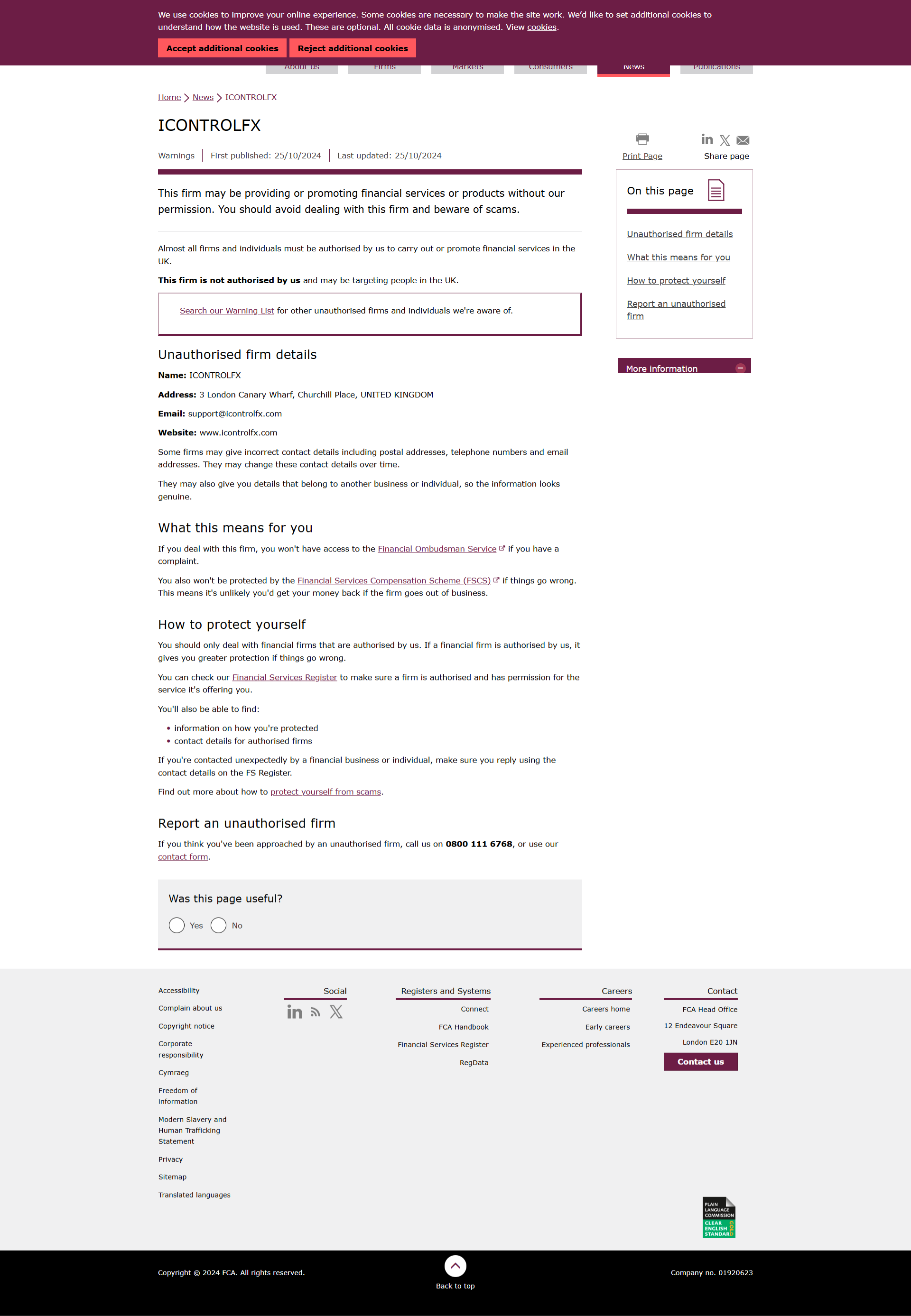 FCA द्वारा अधिकृत फर्मों की चेतावनी सूची ICONTROLFX.