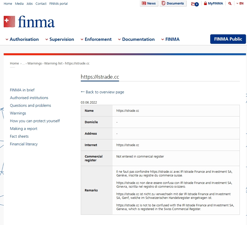 Daftar peringatan perusahaan dan individu yang tidak berwenang Daftar peringatan https://istrade.cc.