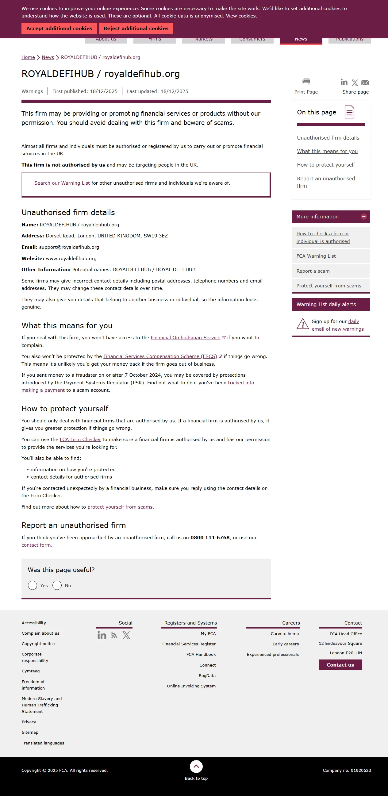 FCA Daftar Peringatan Perusahaan Tidak Berizin ROYALDEFIHUB / royaldefihub.org.