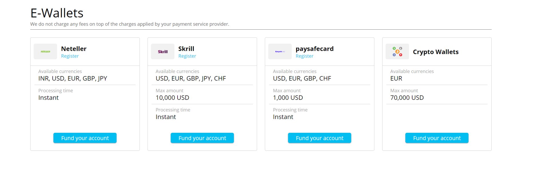Initially, I thought it accepted only e-wallets, the ones you see on this screenshot from the platform, as a way to deposit your account, but these are only additional methods alongside bank cards and wire transfers. Yeah, it is a bit confusing, but bank cards work as a payment method since I used one to deposit my trading account. I don’t know how e-wallets are a better option, I read many comments about that, but the bank card method worked pretty well for me.