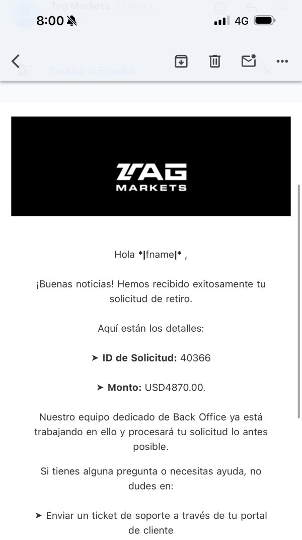 He retirado muchas veces y nunca he tenido un problema , o una llamada de alguien preguntándome porque voy a retirar , confío mucho en tag markets y velocidad de respuesta para los traders y clientes de el mundo