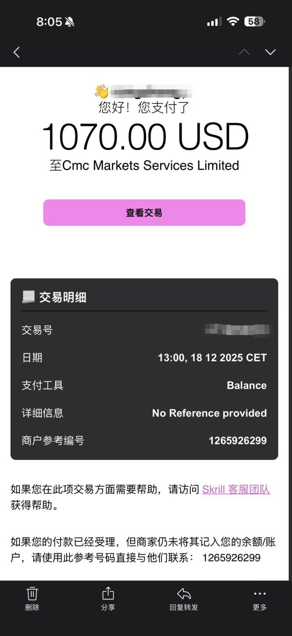 存款1070美金一直没到帐邮件都发了10几封了,最开始skrll+存款出金入金都是秒到,这次存款1周了都没到帐,邮件没没个准确的回复,