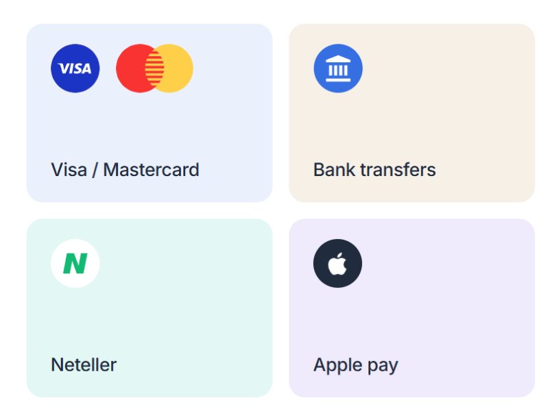 VCG MarketsはVisa/MasterCard、銀行振込、Neteller、Apple Payを通じた支払いを受け付けています。