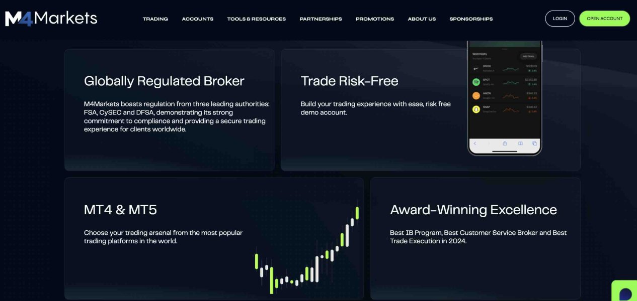 M4Marketsは外国為替、指数、商品、株式、および暗号通貨などの取引インスツルメントを提供しています。