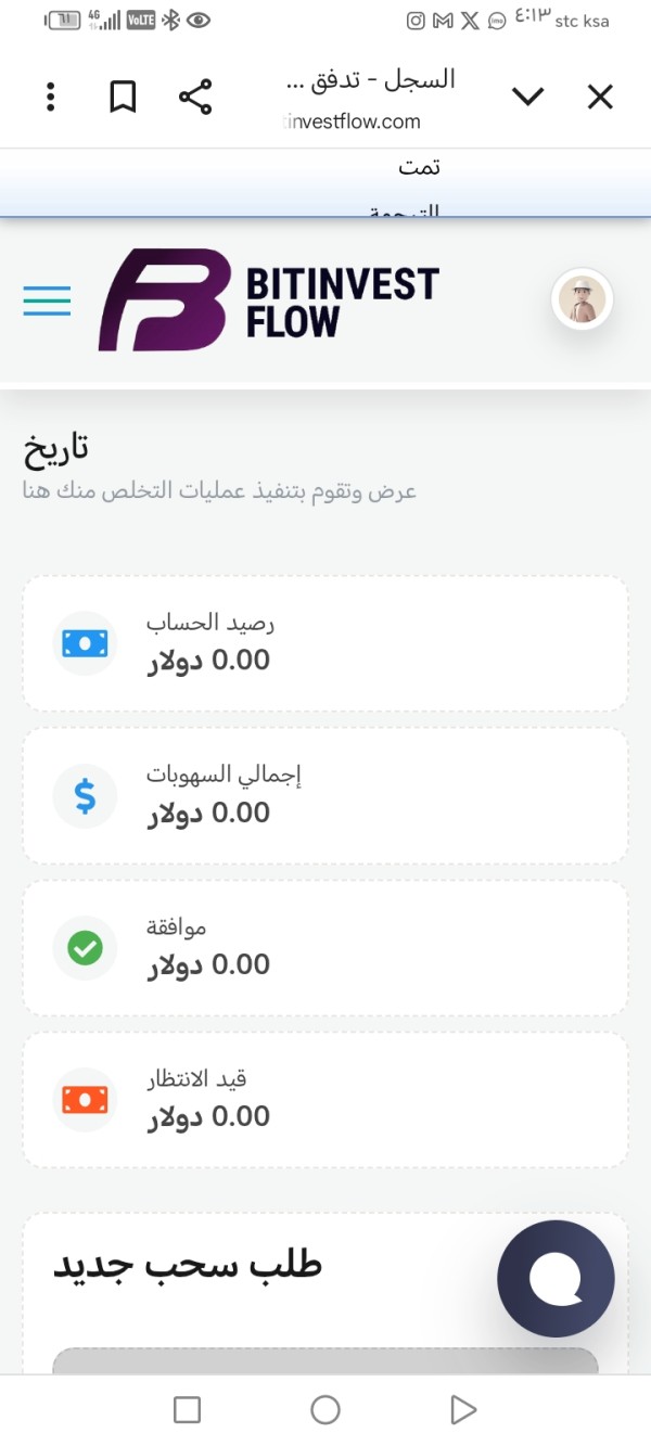 لقد اشتركت معاهم وستثمرت لمده سته أشهر وعندما حاولت اسحب أرباح يقولون ادفع مال إضافي حق الرسوم أصبح الأمر نصب واحتيال ادعو الجميع الحذر من هذه المنصه النصابه Bitinvestflow ارجو الحذر منها