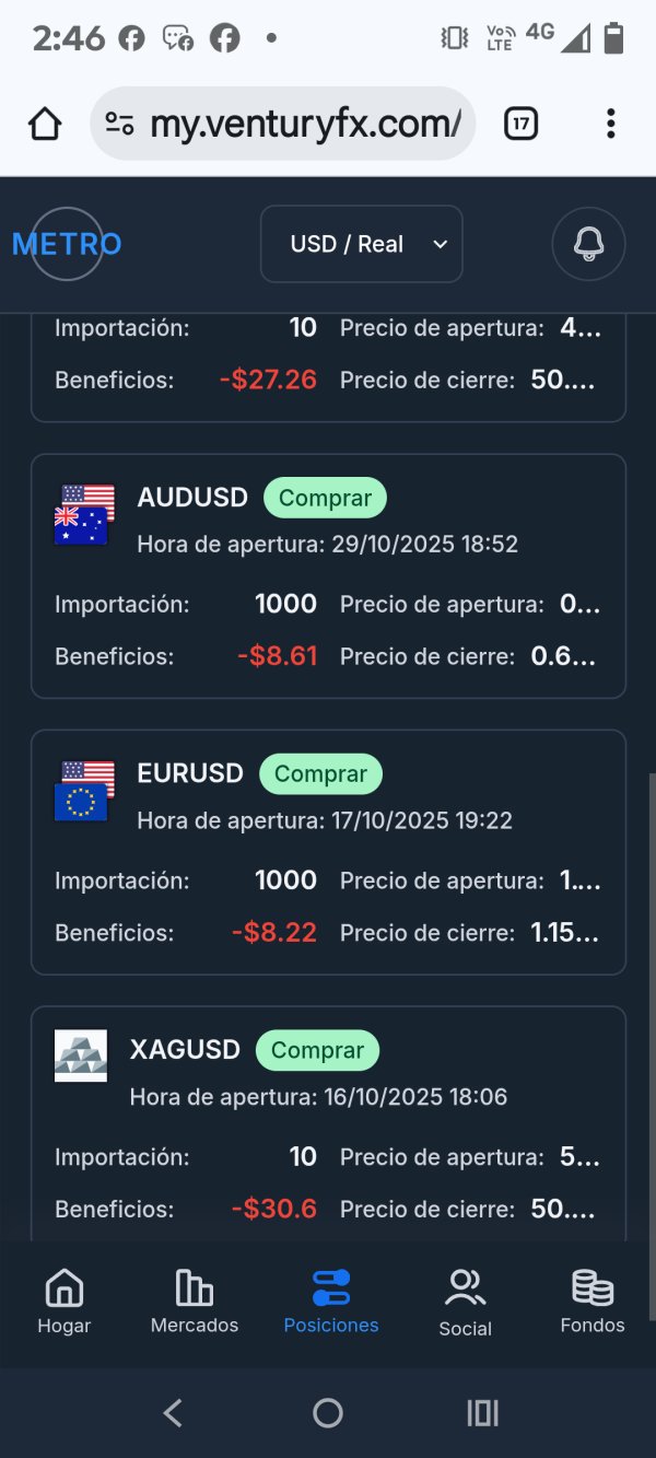 Invierto 300 dólares en venturyfx, pero hace tres días abrieron una serie de inversiones que me hicieron perder todo por las sugerencias de estos estafadores. Así que perdí muchos dólares, así que se recomienda no usar sus servicios.