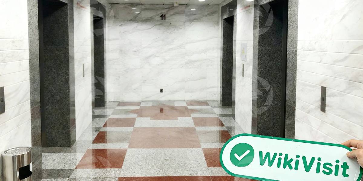 調査団は建物に入り、すりガラスの窓越しに外の美しい景色を眺めたところ、ロビー全体が外の美しい景色に異様に映り、フロアガイドを示す柱にスクリーンがぶら下がっているのが観察されたので注意深く調べたところ、のオフィスのHSBC 11階にあります。