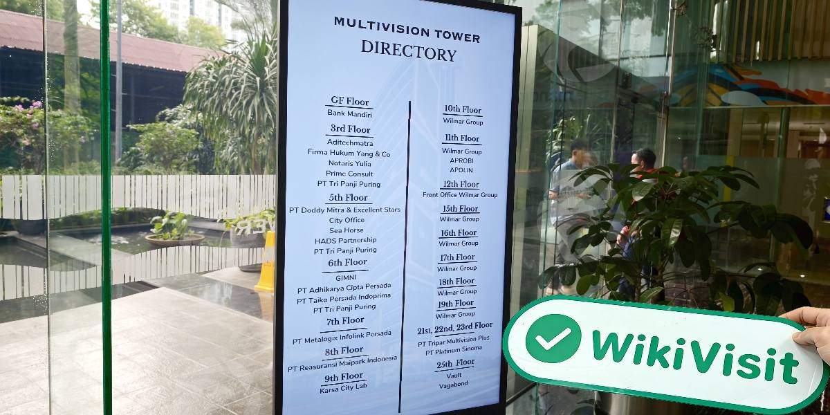 調査員は無事に Multivision Tower に到着しました。この場所は、インドネシアの都心部にある比較的賑やかな通りに位置しており、周辺環境は繁栄し、商業的な雰囲気が強いです。建物の外観には会社の看板や関連情報は見当たりませんでした。このオフィスタワーは高級オフィスビルです。