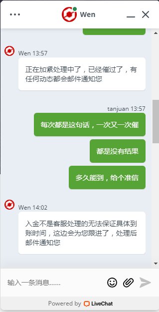 入金超期不到账,客服回复敷衍了事