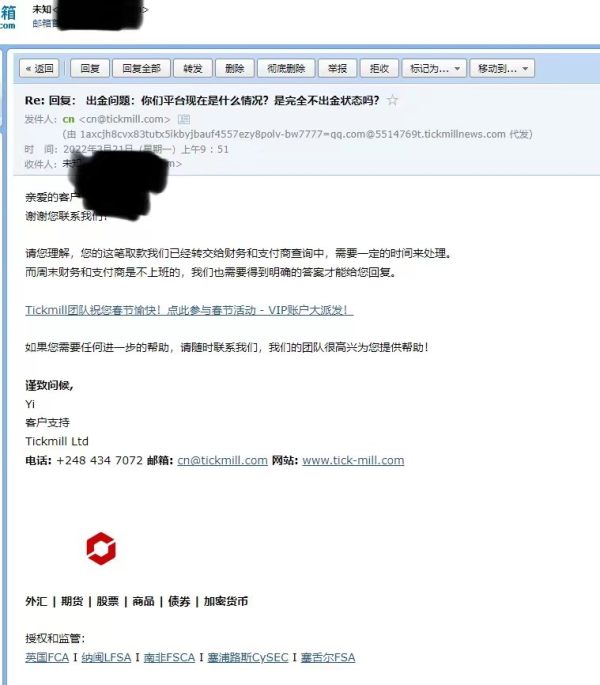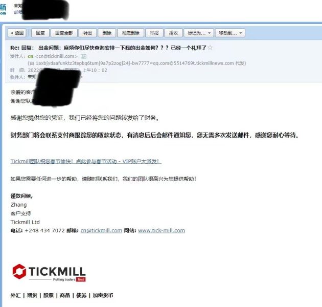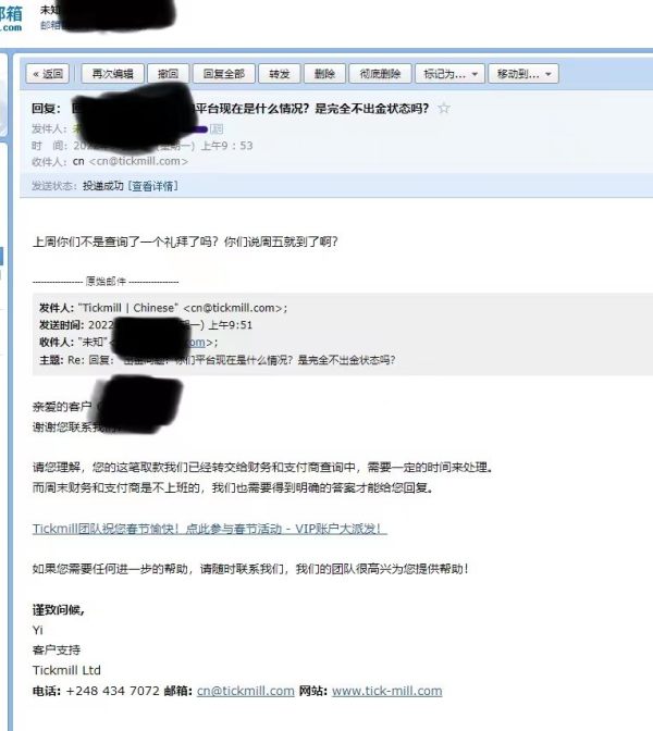 tickmill已经严重无法出金,平台方根本就不管,已经有很多客户无法出金了,交涉无效,由于资金还没出来,所以不便公布信息,请各位谨慎啊,外汇平台,真的是杀人不眨眼!
