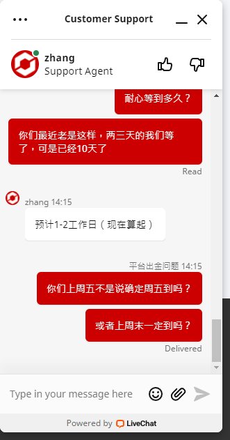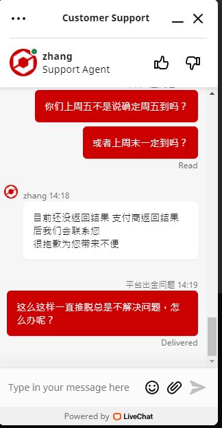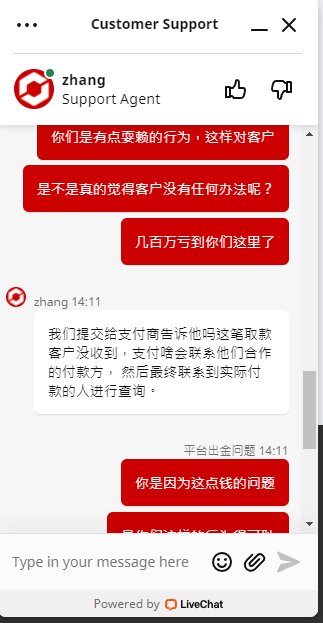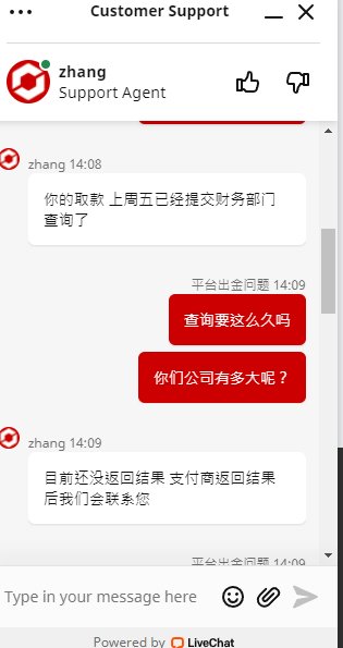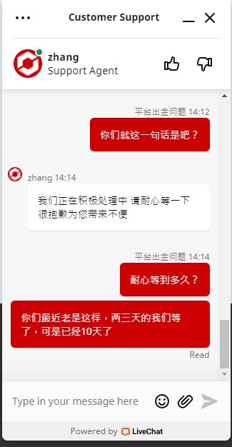 终于TICKMILL经过几次间接性无法出金之后,再一次上演集体无法出金了,代理的几名客户已经很久无法出金,代理佣金也无法出金,客户已经选择报警,这个平台看来终于没法再做了,最近联系出问题,无法入金,无法出金,无法连接交易等等