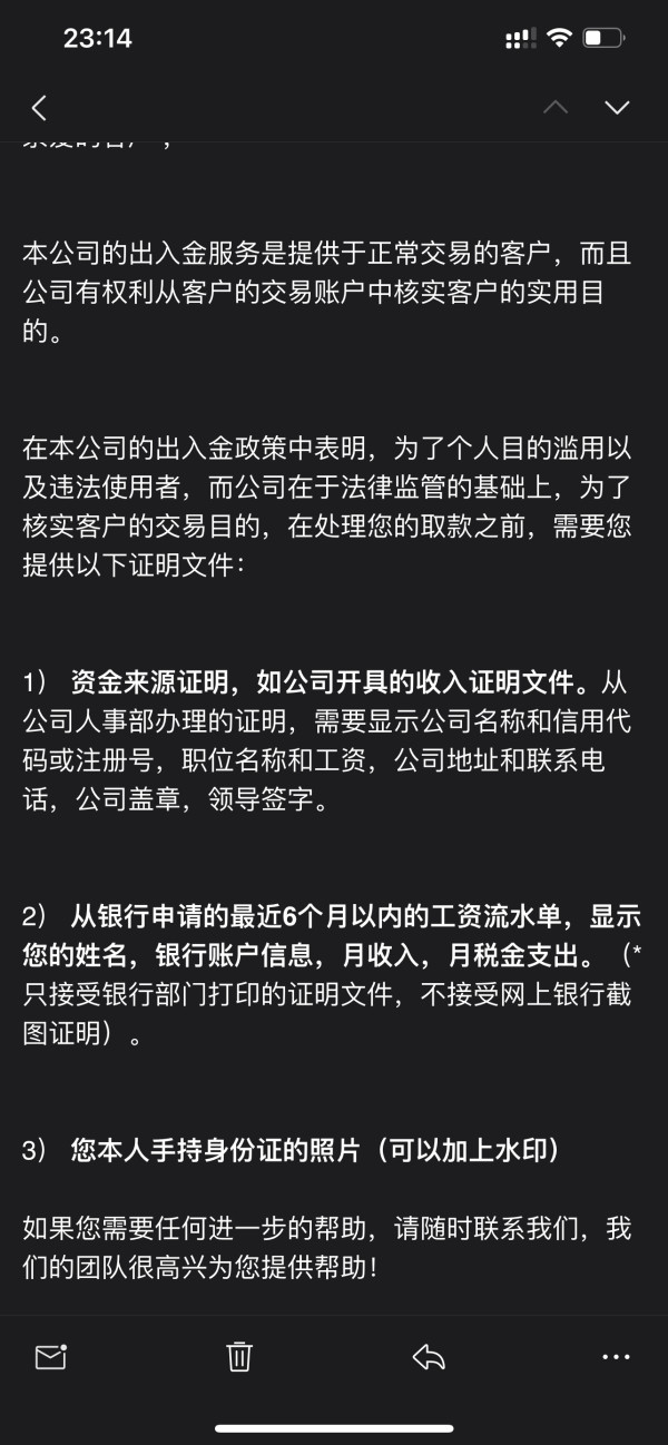 无法出金 让你提供很多东西 入金还是可以入 就是不能出金