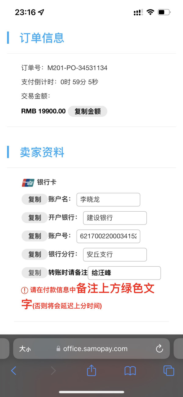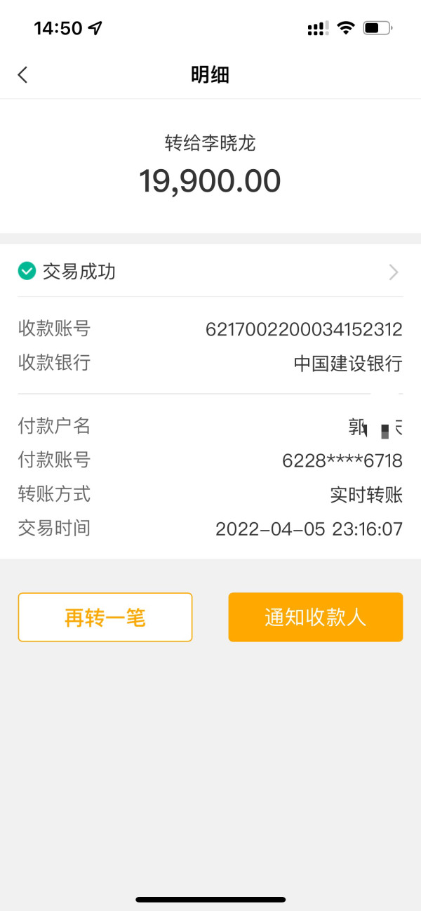 2022年4月5日,通过交易商给的付款信息账号,将人民币19900元转入指定账户,入金迟迟未到账,联系客服,客服说未收到入金款,然后就没有下文了,现在转账都是实时到账,而且姓名和账户都没有错误,我的银行卡已经扣款成功,不存在收不到款的情况!希望平台能帮忙解决,非常感谢!