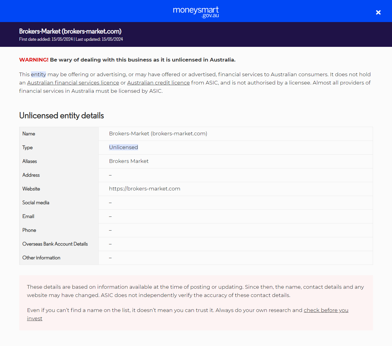 투자자 경고 목록Brokers-Market (brokers-market.com).