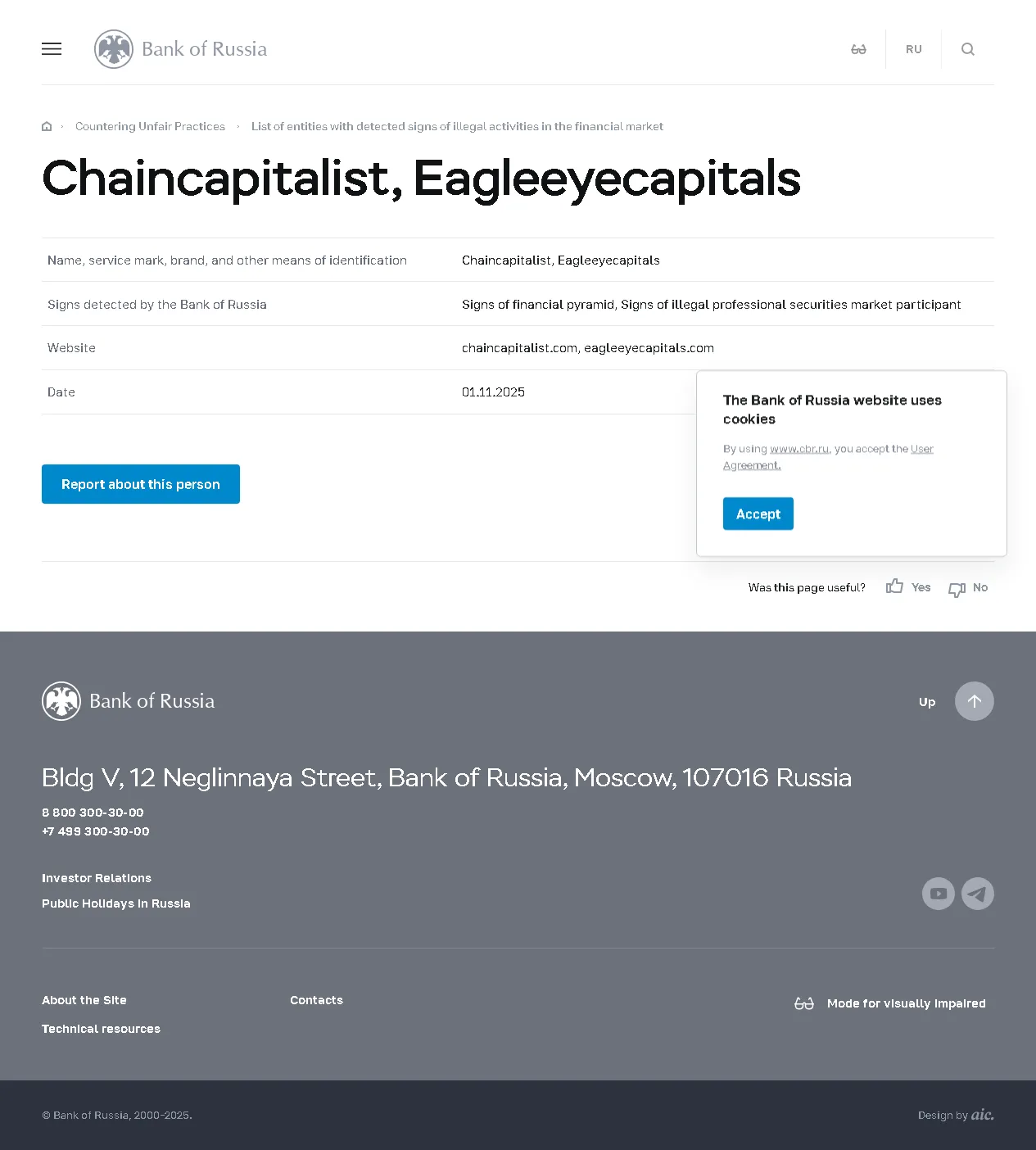 금융 시장에서 불법 활동 징후가 감지된 기업 목록 Chaincapitalist, Eagleeyecapitals.