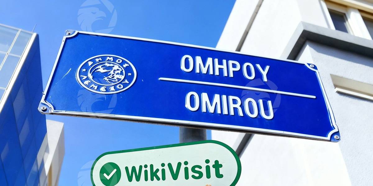 사실 조사 팀은 7 Omirou Street로 가서 높은 기둥에 걸려있는 새로운 파란색 간판을 발견했습니다. 도로 표지판은 두 가지 언어로 방향을 제공합니다.