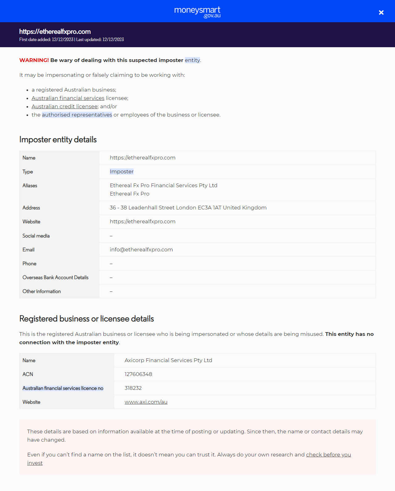ApelidosEthereal Fx Pro Financial Services Pty LtdEthereal Fx Pro