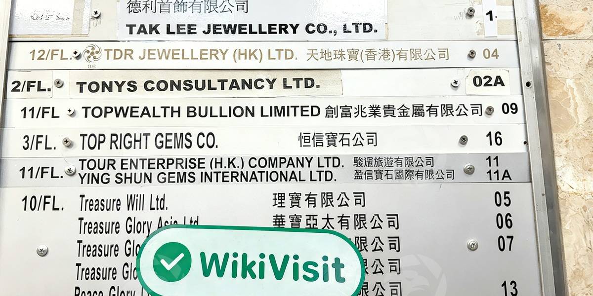 Ao chegar, os investigadores entraram primeiro no saguão do térreo, onde um diretório eletrônico indicava claramente que a Suite 1109 estava registrada sob "TOPWEALTH BULLION LIMITED". Ao subir no elevador para o 11º andar, a equipe constatou que o diretório público neste nível também exibia o nome da empresa na Unidade 1109, correspondendo ao endereço registrado e confirmando inicialmente sua legitimidade.